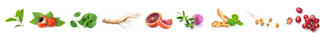 Účinné látky: 1zelený čaj extrakt, guarana extrakt, extrakt špenátu, 6extrakt ženšenu, extrakt z červených pomarančov (morosil), extrakt z brezy, 3extrakt z ďateliny lúčnej, sója extrakt, 4extrakt z ľanu siateho, extrakt z červeného hrozna, extrakt z granátového jablka, 2extrakt z púpavy, synefrín, vitamín K2, 7vitamín D3, 5chróm