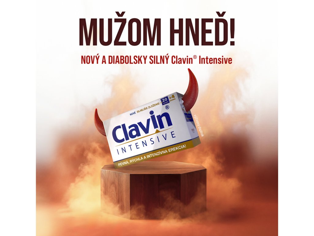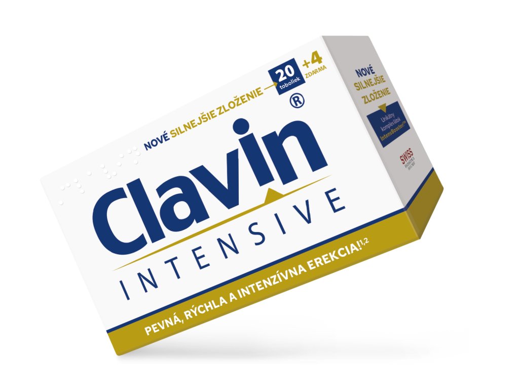 Clavin® INTENSIVE obsahuje nové a silnejšie zloženie! Galenicky upravená zmes špeciálne vybraných účinných látok IntensBooster!TM - účinné látky L-arginín, L-citrulín, tribulus a crocus a po novom tiež vinič amurský, ktoré majú veľmi priaznivý účinok na prekrvenie penisu a erekciu a vyznačujú sa rýchlym nástupom účinku.1,2 Účinné zložky výživového doplnku tiež zvyšujú sexuálne libido a napomáhajú k výraznému zvýšeniu intenzity sexuálneho zážitku.1,2