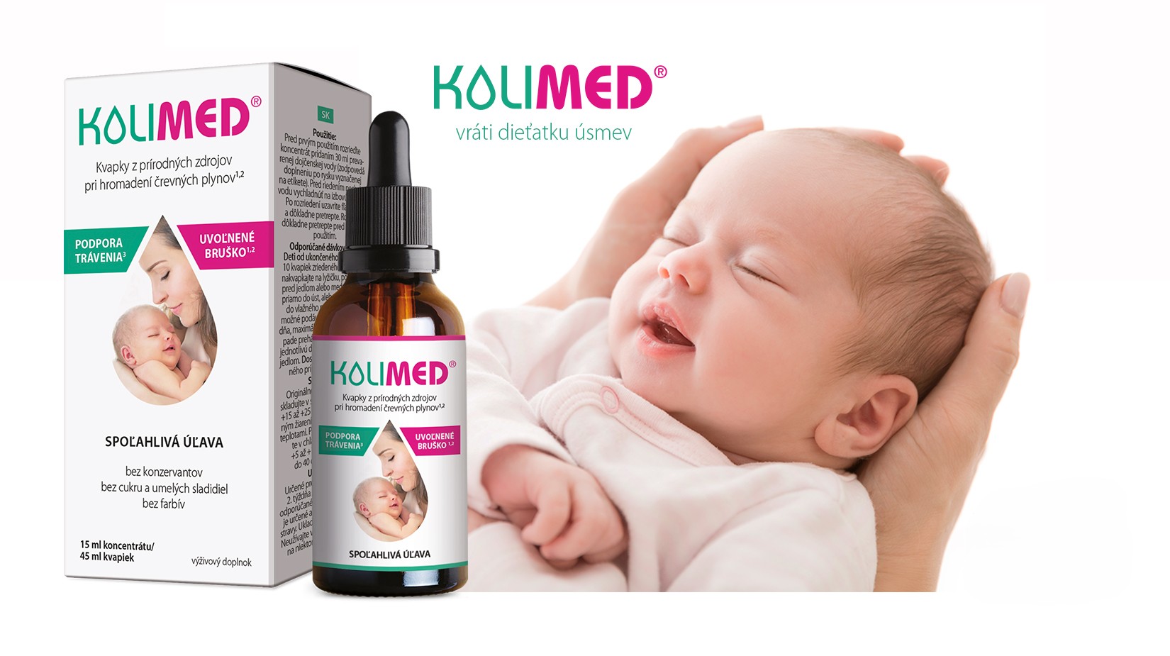 KoliMed®, výživový doplnok pre úľavu pri hromadení črevných plynov a nepokojnom brušku vďaka obsiahnutým vysokokvalitným prírodným olejom z rasce a anízu. Zloženie je doplnené o frukto-oligosacharidy (FOS) s prebiotickou aktivitou, ktoré prispievajú k podpore trávenia a k celkovému komfortu zažívania.