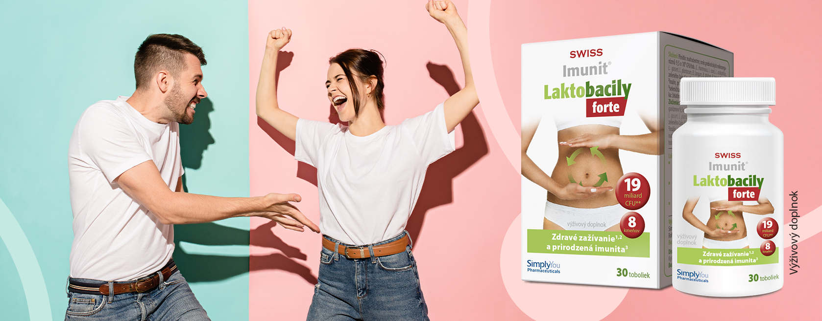 Laktobacily SWISS Imunit® FORTE je výživový doplnok obsahujúci kombináciu 8 kmeňov laktobacilov a bifidobaktérií s vysokým obsahom probiotík (až 19 miliárd probiotických organizmov v dennej dávke*) a zeleným čajom pre zdravý tráviaci systém, inulínom z čakanky pre normálnu funkciu čriev a selénom pre správnu funkciu imunitného systému.