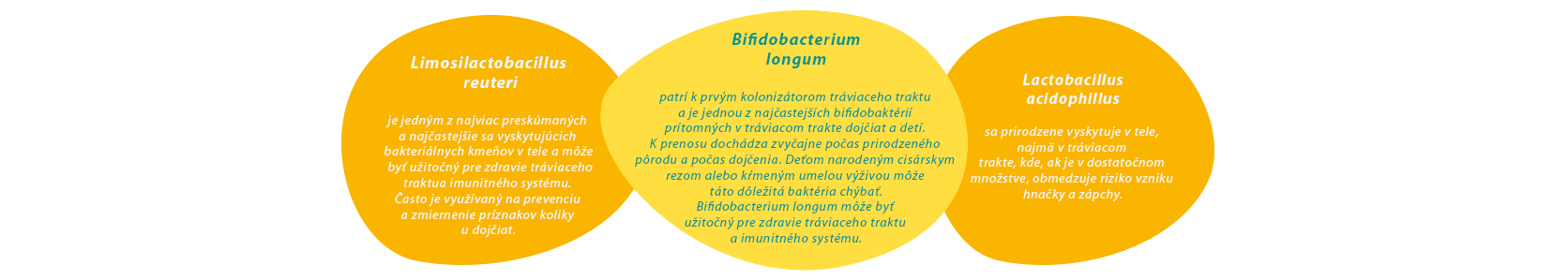 - bakteriálna zmes: Lactobacillus acidophillus, Bifidobacterium longum, Limosilactobacillus reuteri