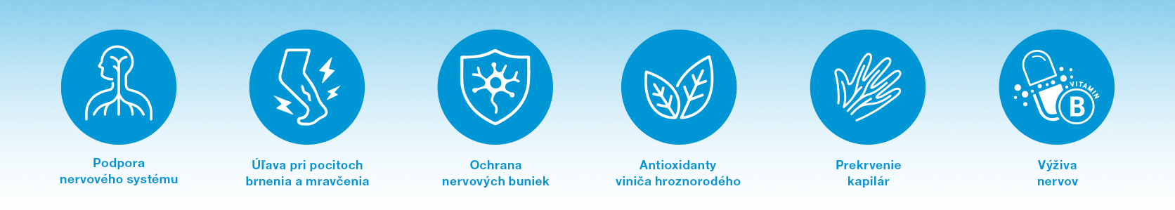 Brniace, tŕpnuce a nepokojné končatiny? Rozhýbte nervy dvojakou silou vysokých dávok vitamínov B pre regeneráciu, výživu a funkčnosť nervovej sústavy a resveratrola z viniča hroznorodého chrániaceho nervy pred škodlivinami.